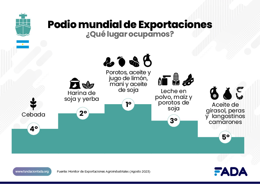 Somos primeros exportadores mundiales de porotos, maní, aceite y jugo de limón y aceite de soja.