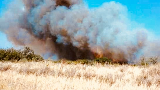 Santa Rosa, campo Sánchez, bomberos de Anguil y cuadrilla DC. Extinguido.