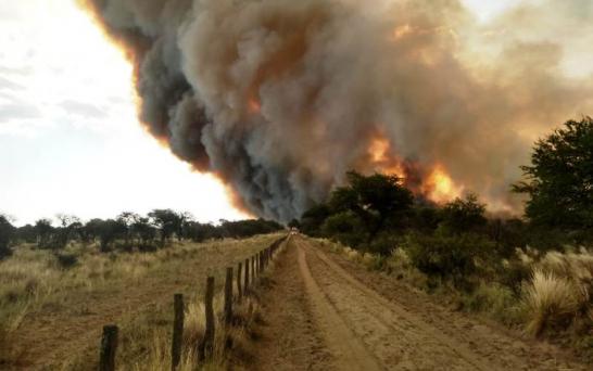 El fuego se inició el martes a la tarde, por causas que aún no pudieron determinarse, a unos 40 kilómetros de la mencionada localidad, en cercanías de una salina y de la Ruta Nacional 154.