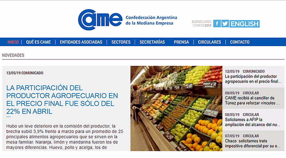 La CAME informó que: “Hubo un leve deterioro en la comisión del productor, la brecha subió 3,9% frente a marzo para un promedio de 25 principales alimentos agropecuarios que se sirven en la mesa familiar». Naranja, limón y mandarina fueron los de mayores diferencias. En tanto que huevo, pollo y acelga, fueron los de menores.