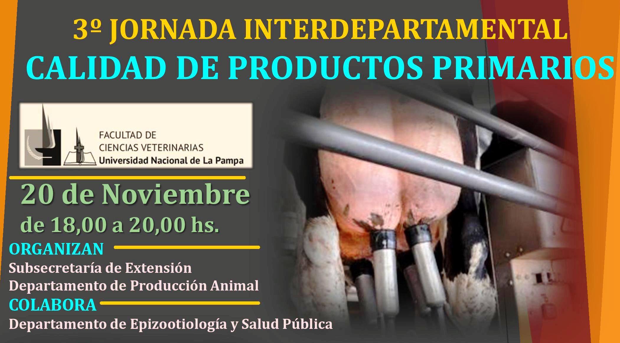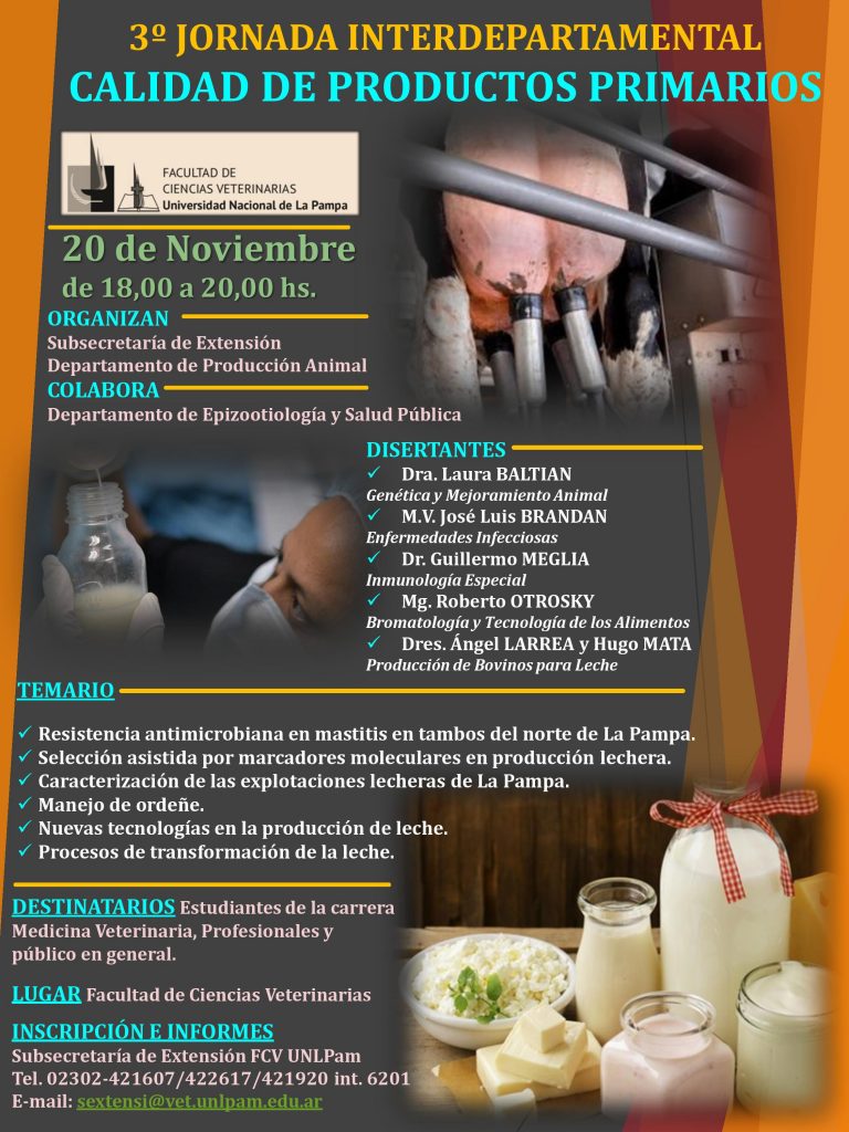 La 3º Jornada Interdepartamental de la Facultad de Ciencias Veterinarias está destinada a “Calidad de productos pimarios» y en ese marco como tema afín será la actividad lechera.