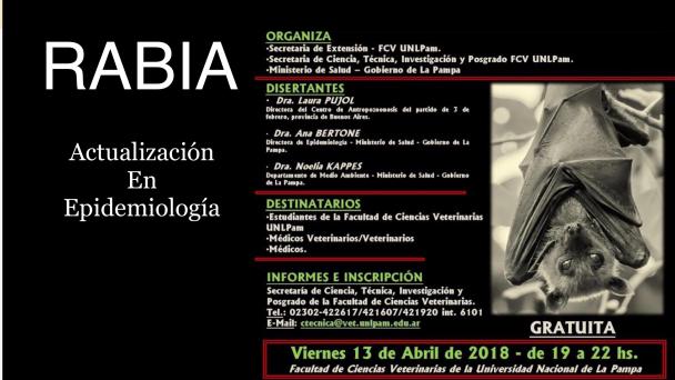 Con un nutrido grupo de especialistas se desarrollará esta semana la jornada gratuita de actualización epidemiológica sobre la rabia. Cabe recordar que en la provincia se encontraron murciélagos con resultado positivo para esta enfermedad.