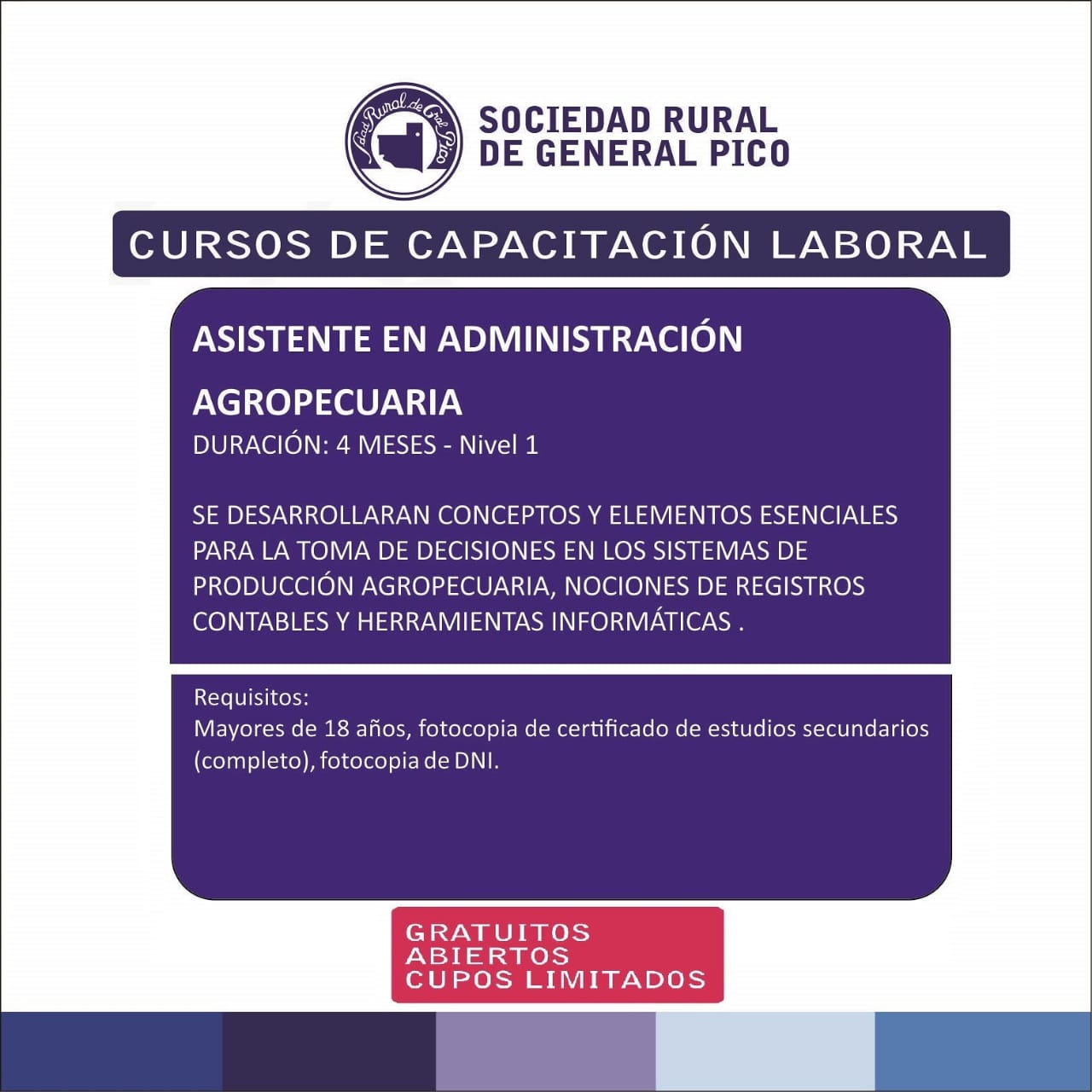 La Sociedad Rural de General Pico, desde su espacio de formación denominado «Metas», vuelve a convocar con cursos gratuitos para el segundo cuatrimestre. Las inscripciones comienzan hoy y concluyen el próximo jueves.