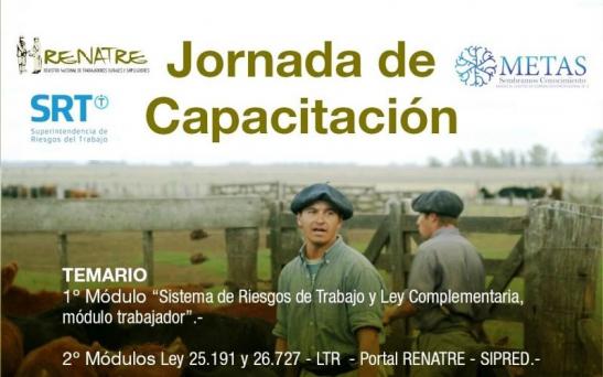 La jornada sobre el “Sistema de Riesgos de Trabajo y Ley Complementaria, módulo trabajador” destinada al sector rural también se enfocará en las leyes 25.191 y 26.727, LRT, Portal Renatre- Sipred.