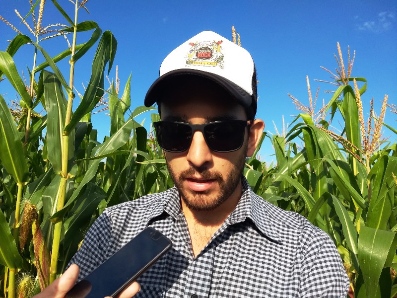 “En la jornada de hoy vamos a ver dos ensayos, uno de hídridos comparativo de maíz con fecha temprana y tardía, y por otro lado una evaluación de diferentes alternativas presiembra para el control de yuyo colorado y gramíneas”, explicó Bruno Pirchio, estudiante avanzado de ingeniería agronómica en la UNLPam.