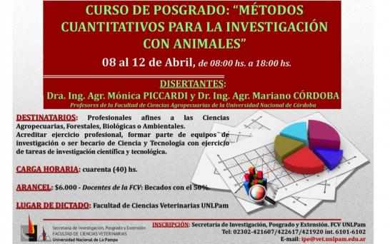 La propuesta es de la Secretaría de Investigación, Posgrado y Extensión de la Facultad de Ciencias Veterinaria de la Universidad Nacional de La Pampa. El director del posgrado es Jorge Palezza, docente de la cátedra de Bioestadística, y coordina Pablo Remirez, docente de la misma cátedra.