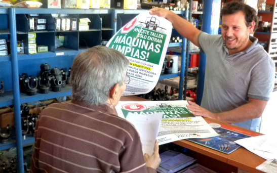 “Llegamos a los talleres entregando folletería para que el dueño pueda poner en el frente. La idea es que el municipio este informado y sepa cuándo ingresa una maquinaria, y por eso es importante que haya un profesional agrónomo a cargo que constate el estado de limpieza de las máquinas y que en realidad logremos que entre limpia y el tallerista esté tranquilo que trabaja en condiciones controladas de exposición de agroquímicos”, continuó.