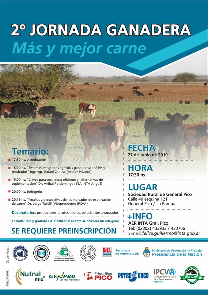La actividad es organizada por: INTA, Sociedad Rural, FAA y los colegios de Ingenieros Agrónomos y Médicos Veterinarios de La Pampa.