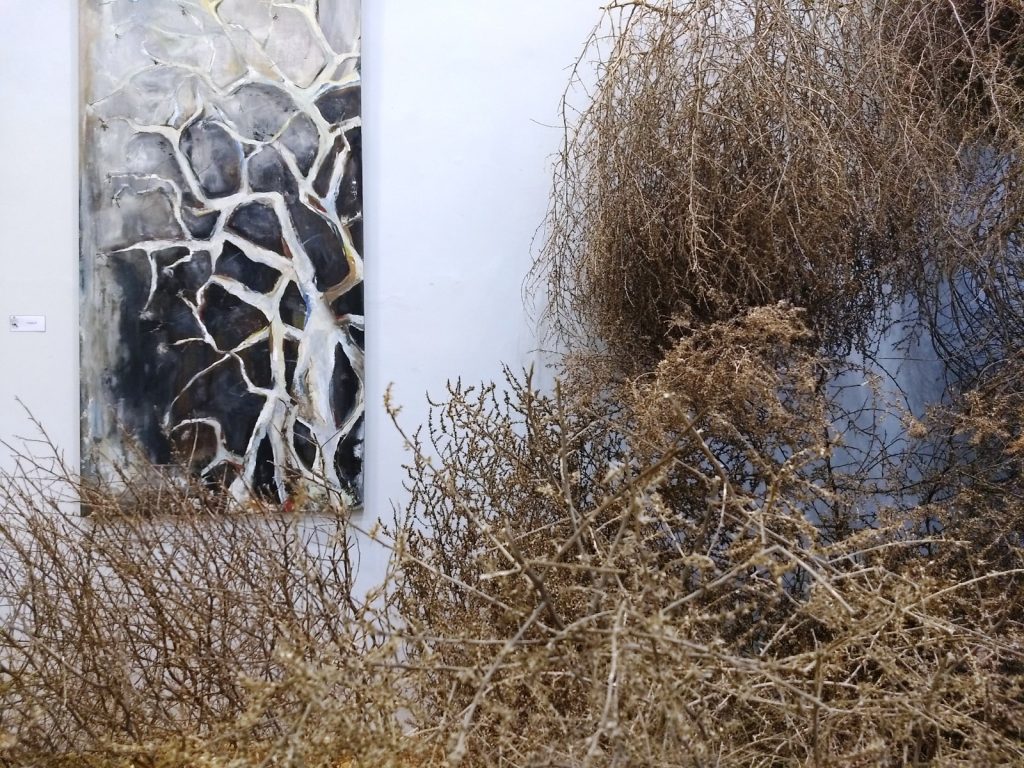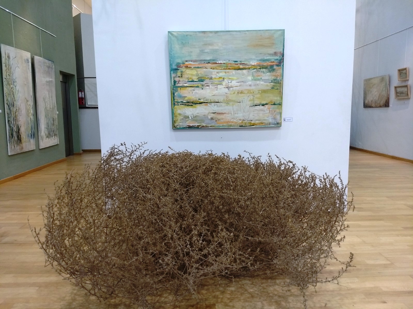 Integrar el arte con el paisaje tuvo impacto, señaló Arocena, y la presencia de cardos rusos en la sala llamó la atención. Estas plantas secas de envergadura que son conocidos por las generaciones anteriores ya que el avance de la agricultura los ha reducido. “Fue gratificante ver que la gente reconocía en la sala el cardo ruso, el pasto puna y el chamico. Y quienes no los conocían preguntaban e incluso pensaban que era algo construido por nosotras”, destacó. Las ramas incorporadas a la muestra no fueron cortadas con ese objetivo porque fueron recogidas de restos de poda.