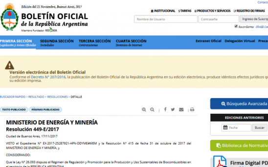 Por la Resolución 449-E/2017 el Ministerio de Energía y Minería el bioetanol producido con caña de azúcar y maíz tendrá una reducción del 13.89 por ciento. Ajuste anunciado ayer en el BO del gobierno nacional.