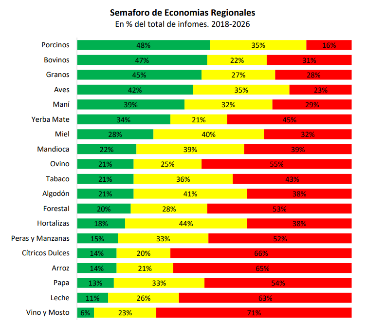 El último semáforo de Coninagro mostró que las carnes atraviesan situaciones diversas, y observando lo ocurrido en los últimos años se puede apreciar que las opciones porcina, aviar y bovina se ubicaron en verde en más del 45% de los meses relevados.