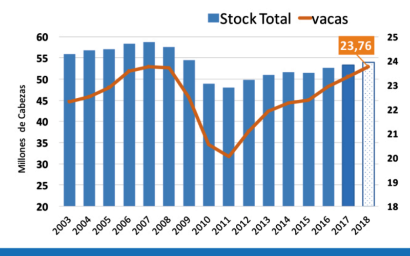 La Secretaría de Gobierno de Agroindustria, dio a conocer que Argentina recuperó el stock de vacas después de 12 años, con 23.76 millones de cabezas de vientres bovinos.