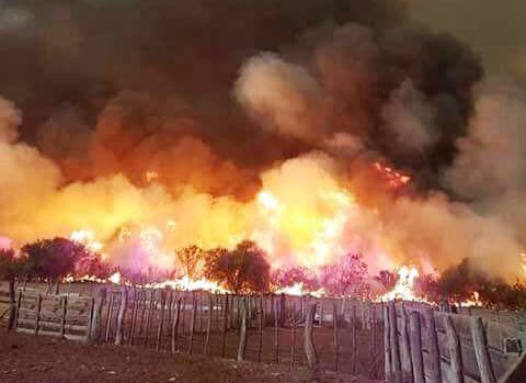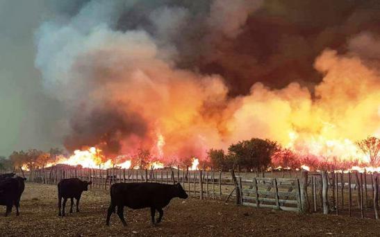 Un productor mostró ayer las imágenes que se vivían en La Adela cuando se desató un incendio a las 18. Desde el gobierno indicaron que en la provincia hay focos controlados pero se han generando nuevos fuegos en los que trabajan Defensa Civil y los bomberos.