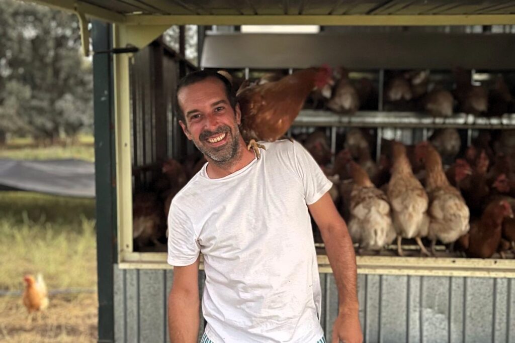 Ignacio Faroux es pampeano y su familia se dedicó al campo pero su irrupción en la producción avícola se da en época de pandemia cuando decide dejar su vida en Buenos Aires para retornar a las tierras de sus antepasados y probar con la producción de huevos.