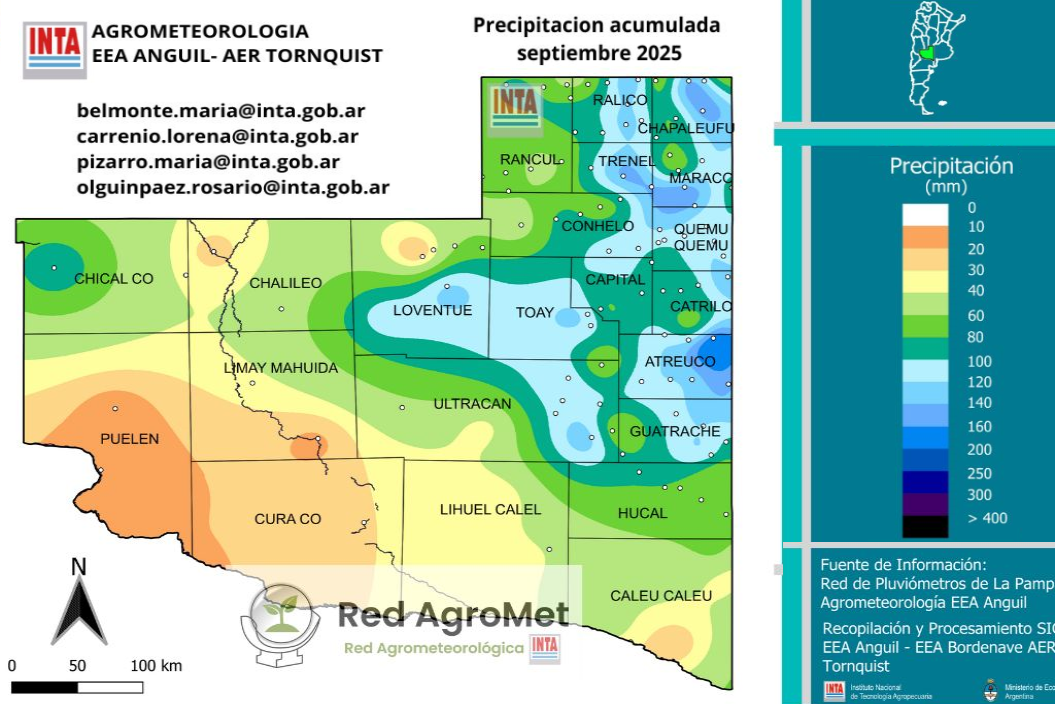 Las precipitaciones del mes de septiembre dejaron un mapa heterogéneo en la provincia, debido a la variabilidad registrada en el territorio pampeano.