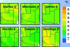 El cielo parece que seguirá derramando de sus bondades por nuestra región y desde INTA emitieron el pronóstico semanal que coincide con el SMN en cuanto a la posibilidad de tormentas hacia jueves o viernes. Mientras que las temperaturas estarán rondado 13 a 15°C para la mínima y las máximas esperadas no superarían los 30 °C.