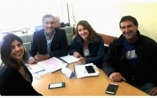 Gustavo Monasterolo, subsecretario de Educación Técnico Profesional; Ana Bertone, directora de Epidemiología, y dos miembros del equipo técnico de esa dirección, Noelia Campper y Roberto Bigoritto, mantuvieron un encuentro para planificar el desarrollo de charlas en Escuelas Agrotécnicas de la Provincia sobre enfermedades epidemiológicas que afectan a la producción animal.
