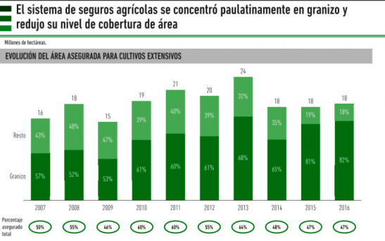 Entre las ventajas está la amplia base de productores que contratan seguros para protegerse de riesgos puntuales, como el granizo, y la certeza de que esa opción es competitiva en cuanto a costo porque se trabaja por debajo del nivel técnico.