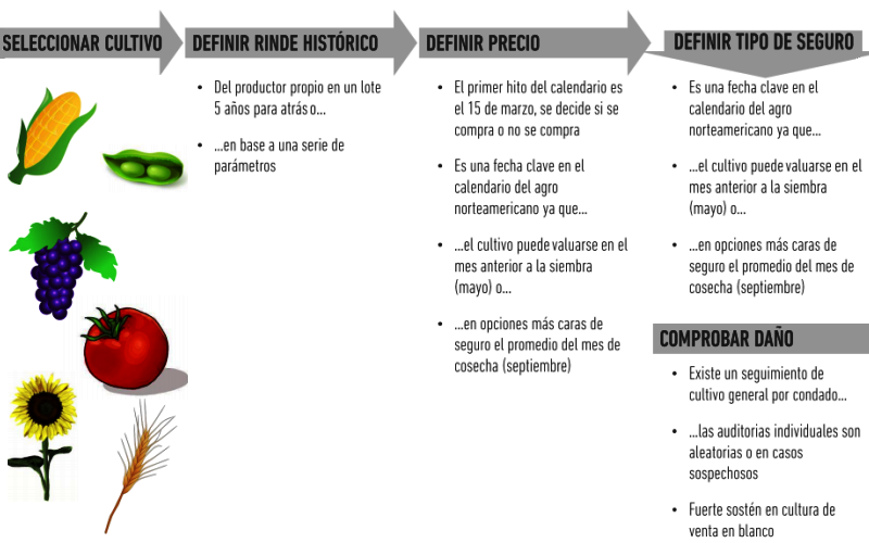 Por otra parte, se avanzó en el análisis de los factores que influyen en la elección del seguro, siendo los puntos principales: Seleccionar el cultivo, definir el rinde histórico, definir el precio, definir el tipo de seguro y comprobar el daño que puede haber sobre esa producción.
