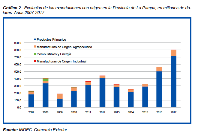 Estas cifras, tienen como información de base según el anuario que la provincia de La Pampa exportó 532 millones de dólares en el año 2017.
