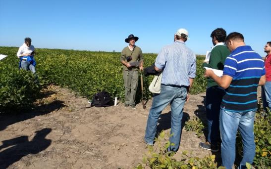 La agencia INTA General Pico mostró un ensayo en la zona de Trebolares con soja afectada por cancro del tallo, con una variedad de hongo que afecta al rendimiento del cultivo y además se transmite a las semillas.