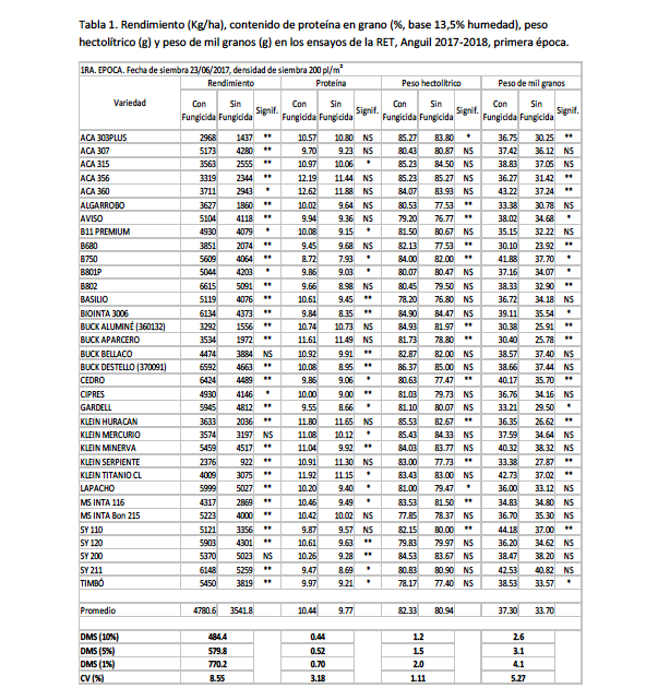 El informe técnico de la Estación Experimental Agropecuaria Anguil “Ing. Agr. Guillermo Covas” evaluó 68 variedades de trigo pan con los ensayos de la campaña pasada advirtiendo los rendimientos, afectación por royas y la acción del fungicida.