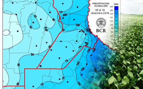 Ayer la BCR publicó: “Los promedios mensuales de diciembre, que están entre los 100 a 120 mm, ya están siendo largamente superados en el 22% de la región pampeana. Las áreas más afectadas son el E de Santa Fe, NE bonaerense y toda la provincia de Entre Ríos, ya superan los 150 mm.”