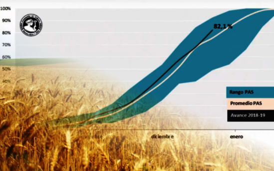 La cosecha de trigo está en el 82.1% con rinde medio que asciende a 29.6 quintales, y el volumen acumulado superó las 14.8 millones de tonelada. Sí se espera llegar a 19 millones de toneladas.