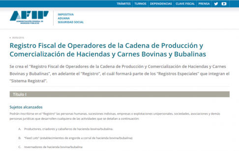 Las autoridades de la Afip crearon el “Registro Fiscal de Operadores de la Cadena de Producción y Comercialización de Haciendas y Carnes Bovinas y Bubalinas”, que intentará mediante un mejor control reducir la evasión presente en el sector cárnico.