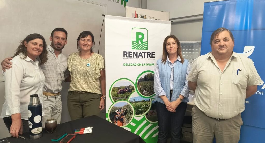 Junto a la delegada del RENATRE La Pampa, estuvo la subdelegada de UATRE, Nora Andrada; los disertantes Romina Beierbach y Marcelo Real Ortellado, responsables de la cátedra de Bovinos y Ovinos de la Facultad de Agronomía; el disertante Víctor García Viniegra, de Pampa Gestión; y, el Director de Ganadería Marcelo Lluch, dependiente del Ministerio de la Producción de La Pampa.