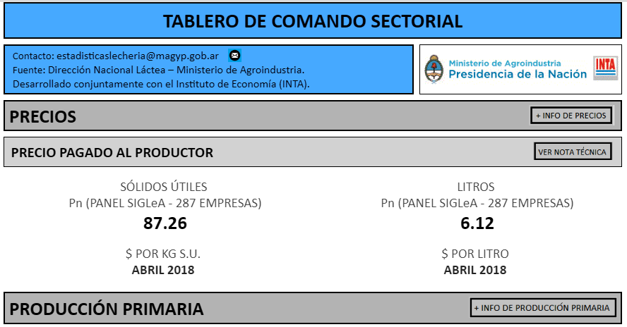 La información surge de la Dirección Nacional Láctea (DNL) del Ministerio de Agroindustria, que presentó la nueva serie de producción nacional de leche cruda, gracias al registro de datos logrado por el Sistema Integrado de Gestión de la Lechería Argentina (SIGLeA), que abarca las bases de datos de la Administración Federal de Ingresos Públicos (AFIP) y del Senasa.